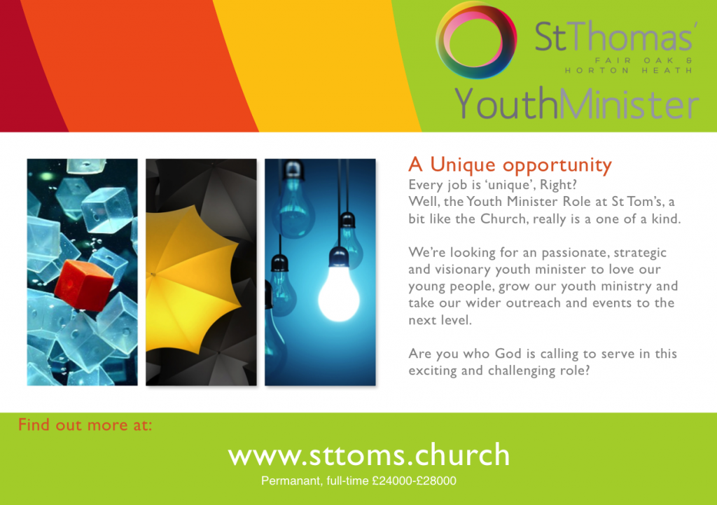 St Thomas’ Church in Horton Heath (Winchester) are looking for a Youth Minister to join their team. Details on this blog post.