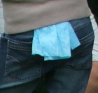 Each person has a cloth down the back of their trousers. It must be easy to remove (can’t be tied on) and must be visible (see image).